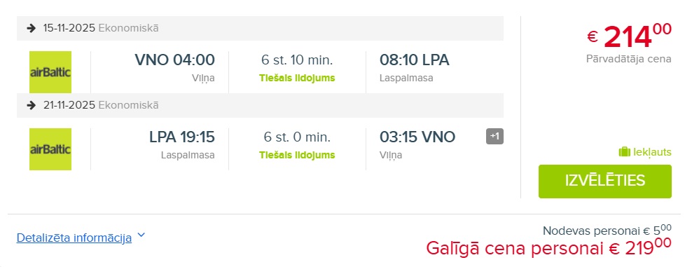 Air Baltic lidojums no Viļņas uz Grankanāriju.