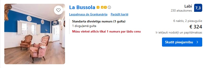 Viesnīca La Bussola. Divvietīgs numurs uz 6 naktīm – 324 EUR.