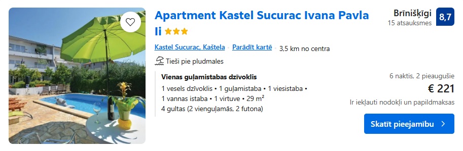 Apartamenti Apartment Kastel Sucurac Ivana Pavla Ii uz 6 naktīm – 221 EUR.