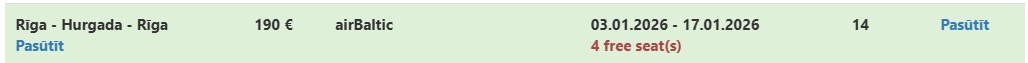 Čarterlidojums no Rīgas uz Hurgadu.