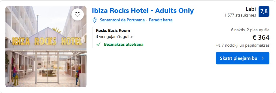 Viesnīca Ibiza Rocks Hotel – Adults Only. Divvietīgs numurs uz 6 naktīm – 364 EUR.