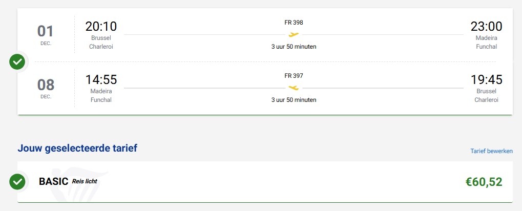 Brisele – Madeira 1.12. un Madeira – Brisele 8.12. 60 EUR (vai 24.11.-1.12.)