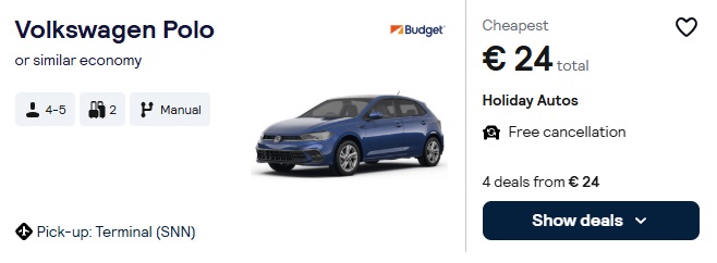 Auto noma uz 2 dienām – 24 EUR (automāts – 29 EUR) ar neierobežotu nobraukumu.