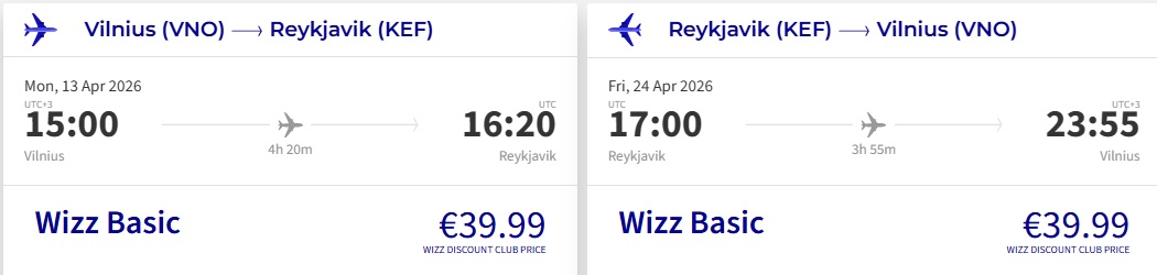 Wizz Air tiešie lidojumi no Viļņas uz Reikjaviku.