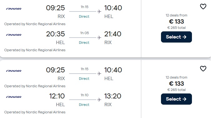 Tiešie Finnair lidojumi no Rīgas uz Helsinkiem.