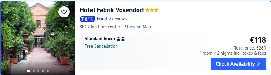 3* viesnīca Hotel Fabrik Vösendorf. Divvietīgs numurs uz 2 naktīm – 269 EUR.