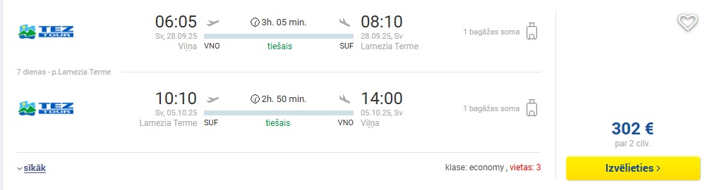 Čarterlidojumi no Viļņas uz Lamēcija Terme.
