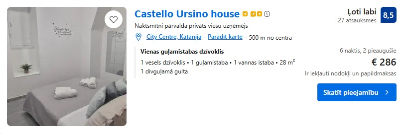 Apartamenti Castello Ursino house uz 6 naktīm – 286 EUR.