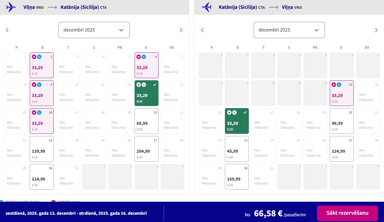 Wizz Air tiešie lidojumi no Viļņas uz Katāniju.