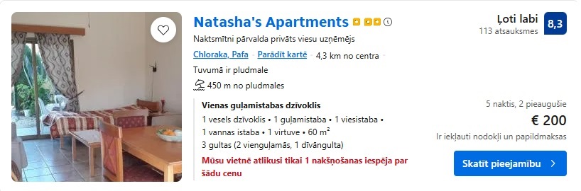 Apartamenti Natasha’s Apartments uz 5 naktīm – 200 EUR.
