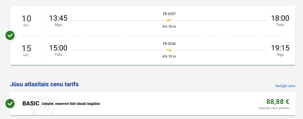 Tiešie Ryanair lidojumi no Rīgas uz Pafu (cenā nav iekļauta bagāža).