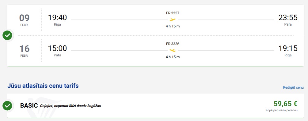 Tiešie Ryanair lidojumi no Rīgas uz Pafu (cenā nav iekļauta bagāža).