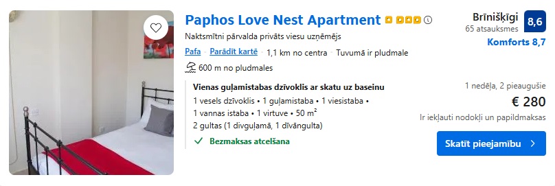 Apartamenti Paphos Love Nest Apartment uz 7 naktīm – 280 EUR.