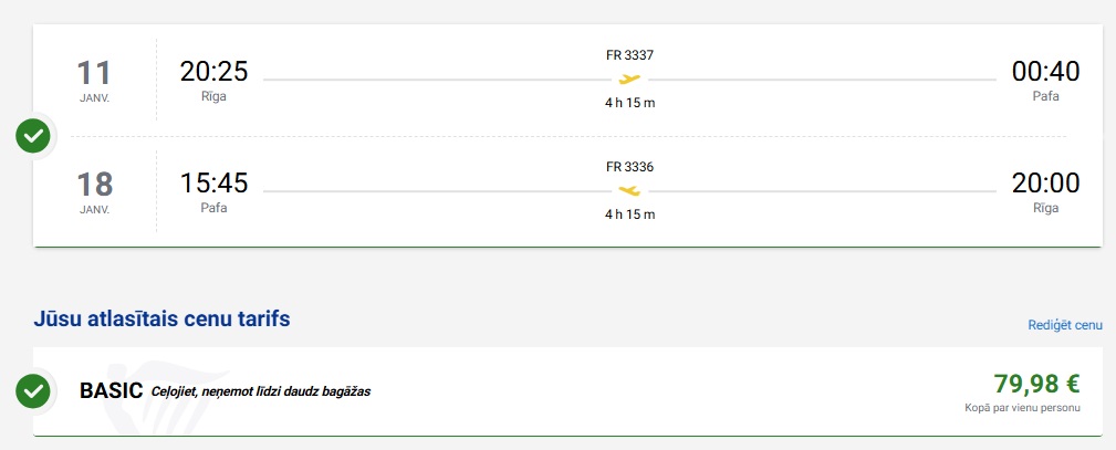Tiešie Ryanair lidojumi no Rīgas uz Pafu (cenā nav iekļauta bagāža).