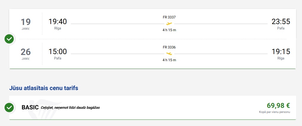 Tiešie Ryanair lidojumi no Rīgas uz Pafu (cenā nav iekļauta bagāža).