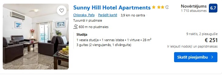 Studija Sunny Hill Hotel Apartments uz 9 naktīm – 251 EUR.