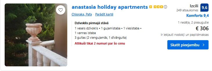 Apartamenti anastasia holiday apartments uz 7 naktīm – 306 EUR.
