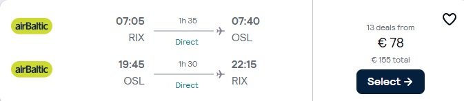 Air Baltic / Norwegian un Pegasus Airlines lidojumi nav savienoti, tāpēc ieteicams izvēlēties maršrutu ar vismaz 4-6 stundu laiku starp lidojumiem Skandināvijā, lai izietu kontroli.