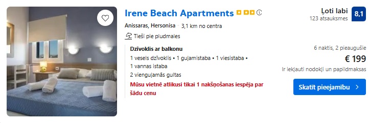 Apartamenti Irene Beach Apartments uz 6 naktīm – 199 EUR.