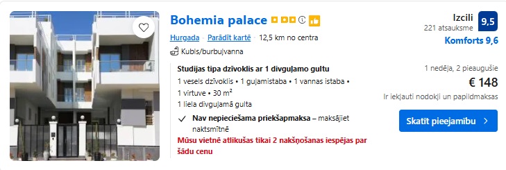 Viesnīca Bohemia palace. Studija uz 7 naktīm – 148 EUR.