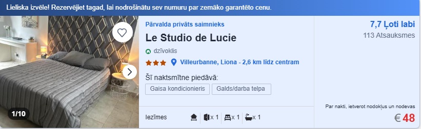 Studija Le Studio de Lucie uz 3 naktīm – 144 EUR.