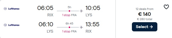 Lufthansa lidojums Rīga – Liona ar pārsēšanos Frankfurtē.