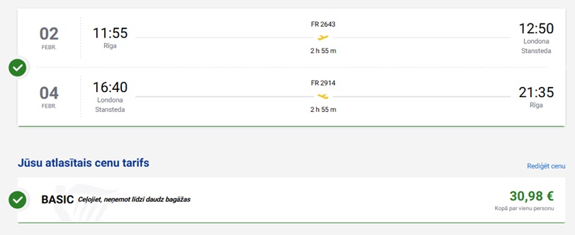 Tiešie Ryanair lidojumi no Rīgas uz Londonu (bagāža nav iekļauta cenā).