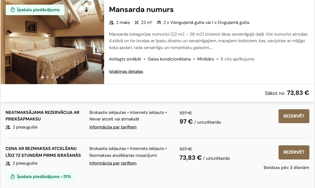 Rezervācijas iespējams veikt periodam līdz 30.04.2026. Rezervējiet no 30. oktobra līdz 2. novembrim.