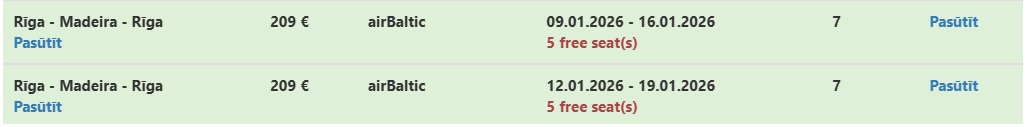 Čarterlidojums no Rīgas uz Madeiru.