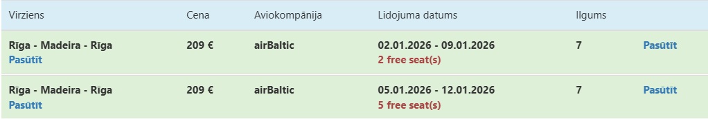Čarterlidojums no Rīgas uz Madeiru.