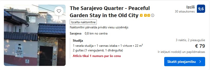 Rīga – Sarajeva piem. 2.-5.05. 65 EUR turp un atpakaļ vienam cilvēkam