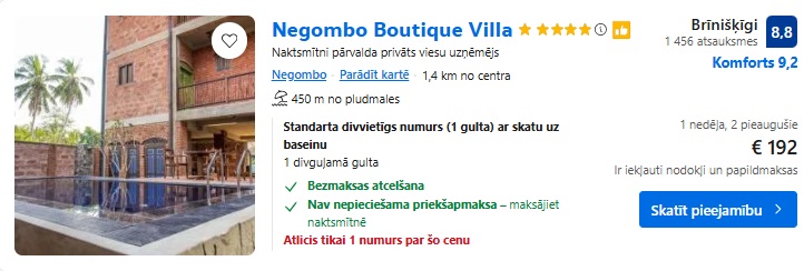 5* viesnīca Negombo Boutique Villa. Divvietīgs numurs uz 7 naktīm – 244 EUR.