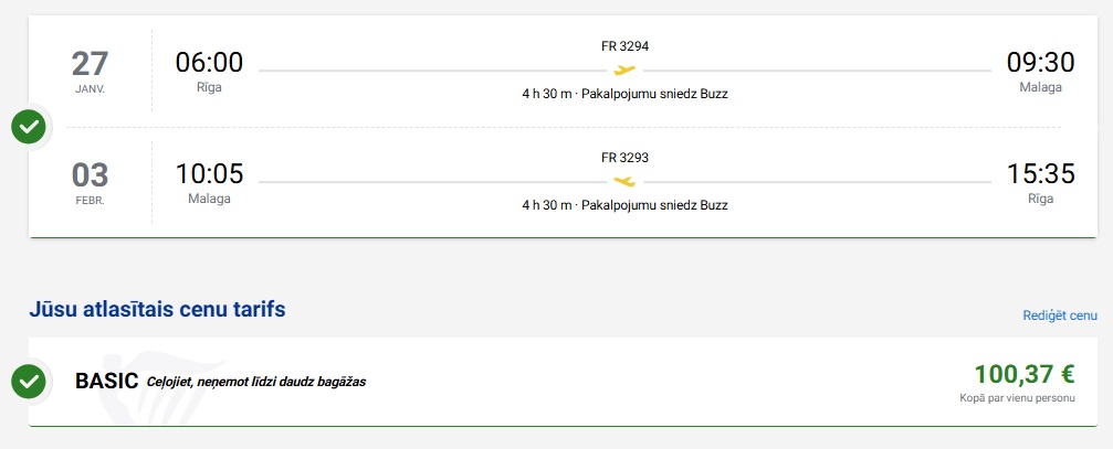Piem. 27.01.-3.02. 100 EUR turp un atpakaļ vienam cilvēkam