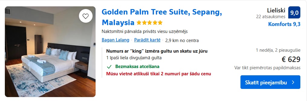 Piemēra datumi: 15.-23.11. 599 EUR turp-atpakaļ vienam cilvēkam