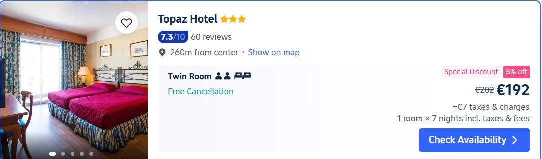 3* viesnīca Topaz Hotel. Apartamenti uz 7 naktīm – 192 EUR.