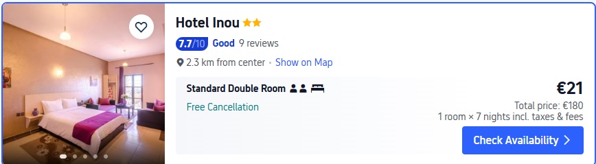 - Dienas izbrauciens uz Paradise Valley – gleznaina ieleja ar dabas baseiniem un palmu birzīm apmēram stundu no Agadiras.