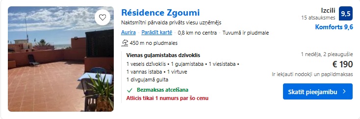 Apartamenti Résidence Zgoumi uz 7 naktīm – 190 EUR.