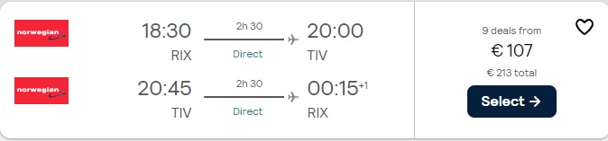 Tiešie Norwegian lidojumi Rīga – Tivata.