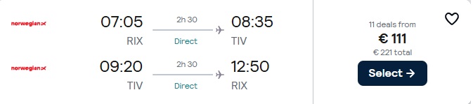 Tiešie Norwegian lidojumi Rīga – Tivata.