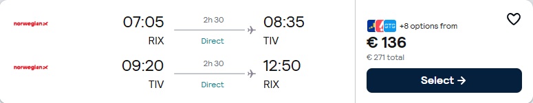 Tiešie Norwegian lidojumi Rīga – Tivata.