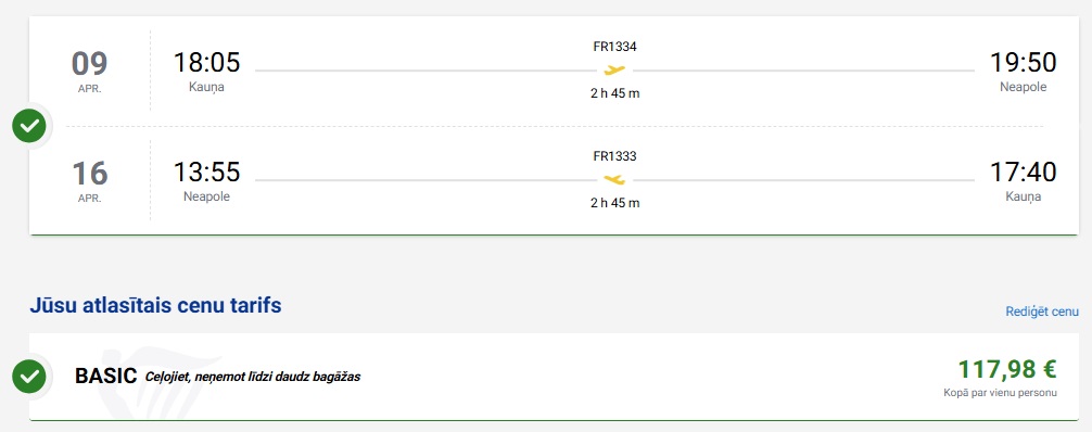 Tiešie Ryanair lidojumi no Kauņas uz Neapoli.
