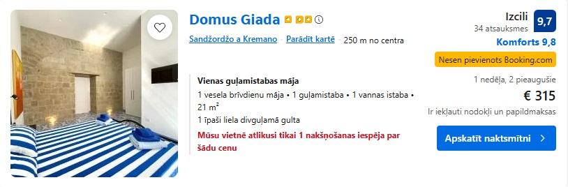 Brīvdienu māja Domus Giada uz 7 naktīm – 315 EUR.