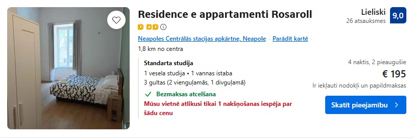 Studija Residence e appartamenti Rosaroll uz 4 naktīm – 195 EUR.