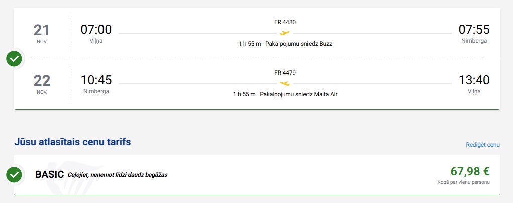 Tiešie Ryanair lidojumi no Viļņas uz Nirnbergu.