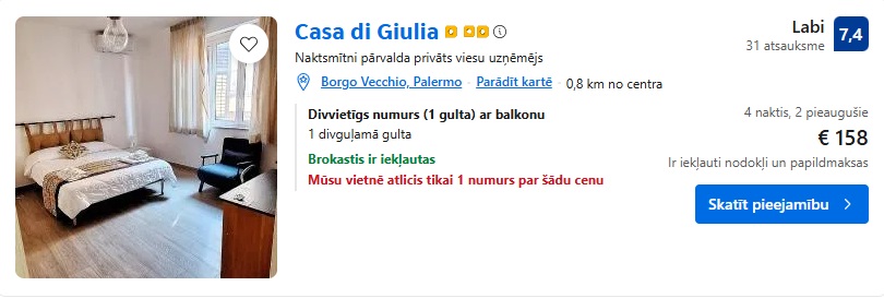 Viesu nams Casa di Giulia. Divvietīgs numurs uz 4 naktīm ar brokastīm – 158 EUR.