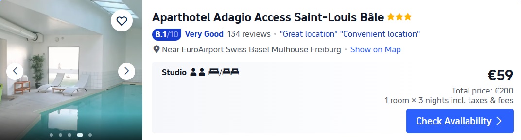 Studija Aparthotel Adagio Access Saint Louis Bâle uz 3 naktīm – 200 EUR.