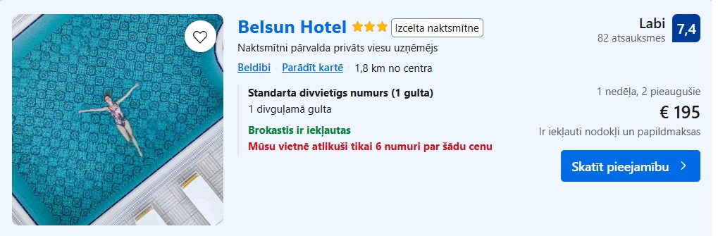 3* viesnīca Belsun Hotel. Divvietīgs numurs uz 7 naktīm ar brokastīm – 195 EUR.