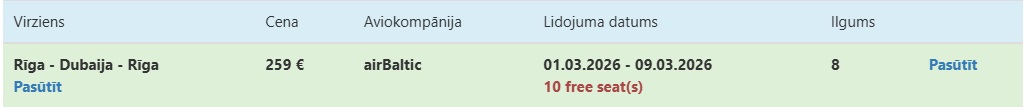 Tiešais Air Baltic lidojums no Rīgas uz Dubaiju.