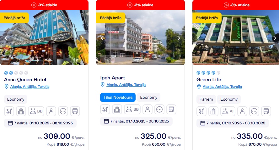Novatours ceļojums no Rīgas uz Antāliju, Turciju.