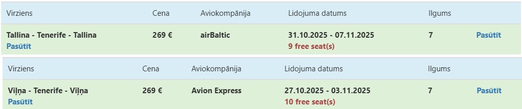 Čarterlidojums no Tallinas vai Viļņas uz Tenerifi.